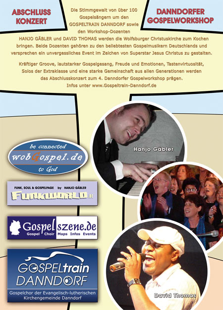 Chor der Chorleiter tritt beim Gospelkirchentag in Düsseldorf vor über 4000 Gospelfans auf: Anlässlich des größten Gospelfestivals Deutschlands vom 01.-03. September 2006 in Düsseldorf formiert die Creative Kirche in Witten den Chor der Chorleiter. Zu diesem "German Gospel Choir" hat auch Arjan Leuschner, Chorleiter des Gospeltrain Danndorf, eine Einladung bekommen und wird zusammen mit weiteren 100 Chorleiterinnen und Chorleitern aus ganz Deutschland beim großen Galakonzert des Gospelkirchentags in Düsseldorf am Samstag, den 02. September auftreten.